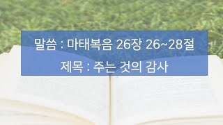 | 244 | 주는 것의 감사 | 장영환 목사 | 마태복음 26장 26-28절 | 2025-11-23 | 27 | |